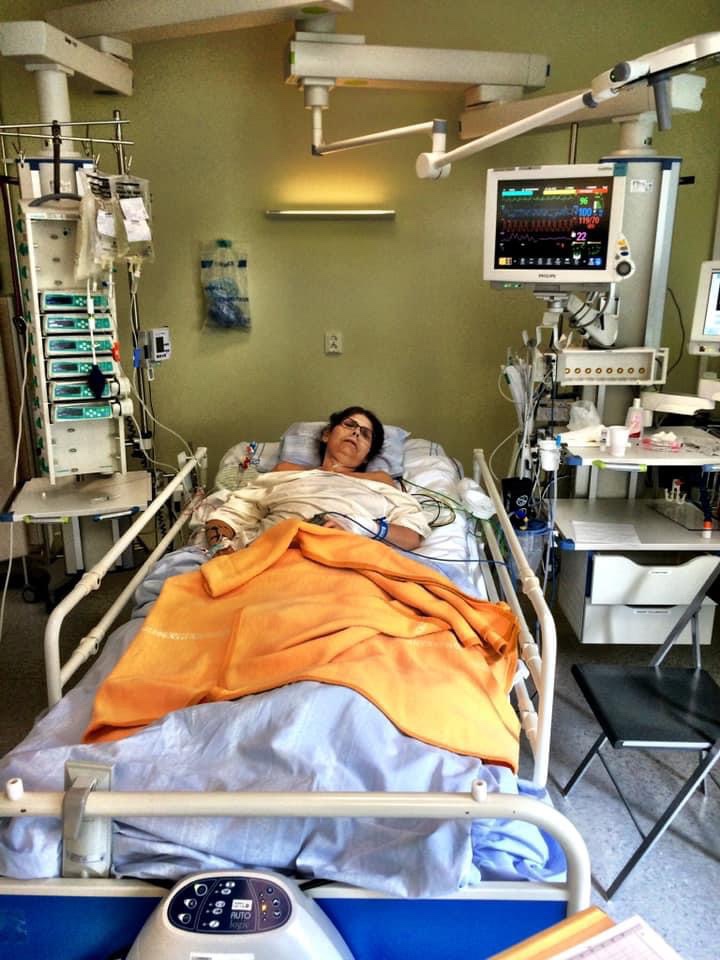 Vi havde haft samtaler om liv og død, og da jeg ligger og kæmper bliver jeg pludselig bange for, at alt er slut, og at ingen vil kæmpe for og med mig. Jeg fortæller min mand, at uanset om jeg bare kan sidde i en stol og sidde, så vil jeg se mine børn vokse op.