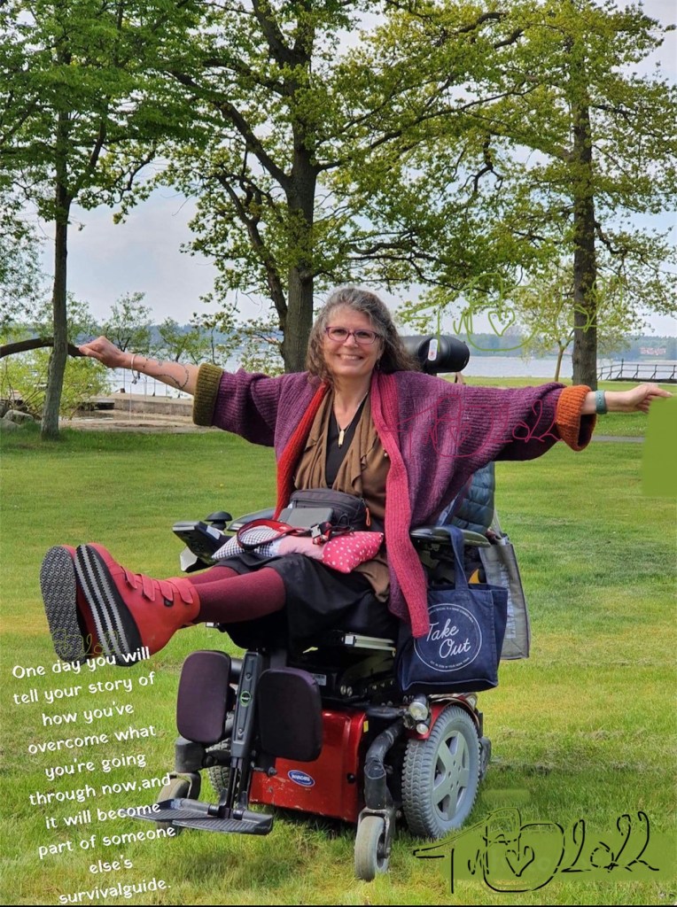 Jeg havde aldrig tænkt tanken, jeg skulle førtidspensioneres, da jeg var under 40,eller skulle tilbringe så mange fødselsdage på hospitalet, eller ligge inde på sygehus i 7 måneder adskilt fra mine nære og kære og komme hjem i rullestol, men faktum er, det skete for mig, og jeg må forsøge at spille mit bedste spil, med de kort, jeg nu en gang har fået på hånden.