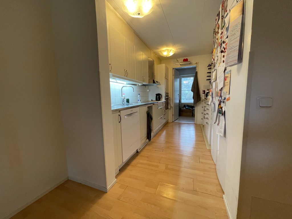 Så vi brugte aftenen/natten på , at pakke det sidste af køkkenet og spisestuen ned, så de kan gå i gång med nedmontering af den side af køkkenet idag fredag.