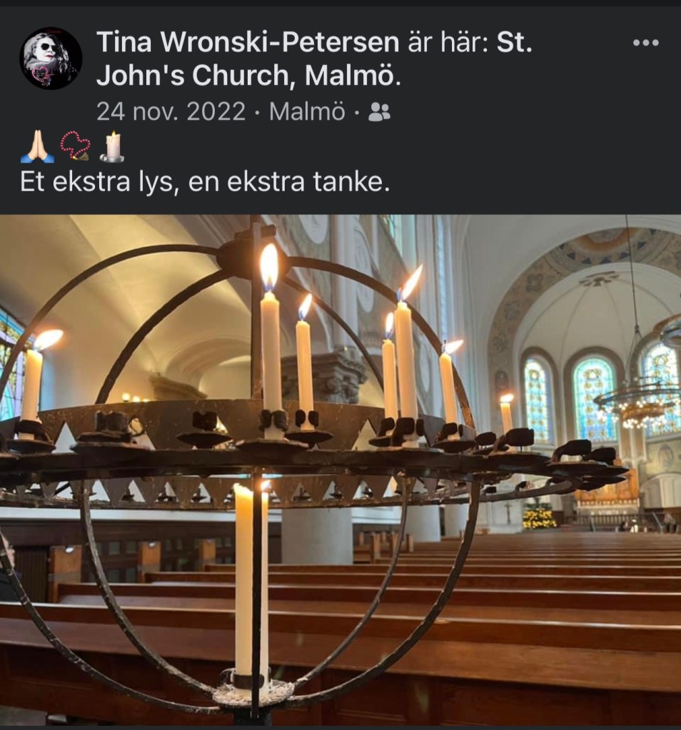 Har kæmpet med at forholde mig til, at du er borte for altid, selvom det er det eneste, der er sikkert her i verden; at vi skal herfra…hver gang jeg har tændt et lys, har jeg følt at din sjæl var med mig. Glæder mig over at dele en tanke med dig, når jeg står i nærheden af din sidste hvileplads. Som en sømand af havet …