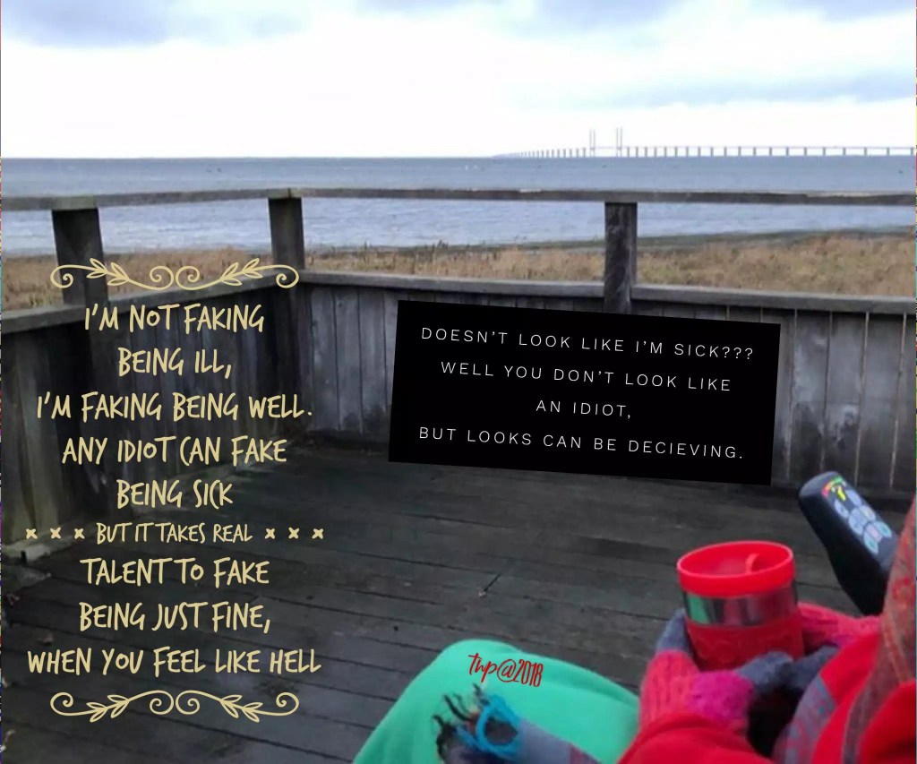 Udelukkende at tænke på sig selv som en syg person, der ikke længere er i stand til, at gøre visse ting, er skadende både fysisk og psykisk. Dermed ikke sagt, at vi ikke skal være realistiske omkring vores begrænsninger. Og der vil være dage, hvor du vågner og bare ved, at idag bliver sådan en dag, og det er helt okay. For det er okay, ikke at være okay hele tiden. Det er en naturlig del af livet, selv for folk uden kroniske sygdomme og en naturlig del af livets benspænd.